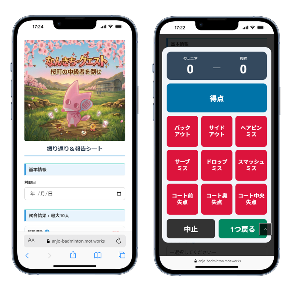なんきちクエスト最大の強みです!日々の練習や試合を、ただの「記録」で終わらせていませんか?なんきちクエスト完全オリジナルの振り返り&報告シートは、バドミントンを冒険のように楽しめる報告ツールです。